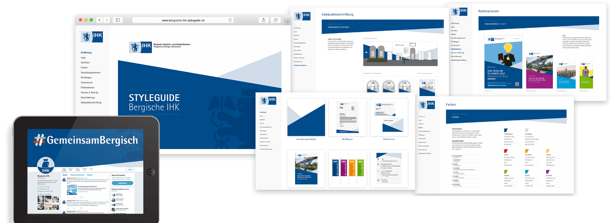 In knappen 6 Monaten haben wir gemeinsam einen starken zukunftsweisenden Auftritt gestaltet, der (bis auf die Website) sämtliche Medien der großen Handelskammer neu und frisch erscheinen lässt: Von den Visitenkarten über Broschüren und Werbemittel bis zum Schilder-Leitsystem im Hause.